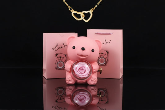 Eternal Rose Bear & Personalized Necklace Gift Set